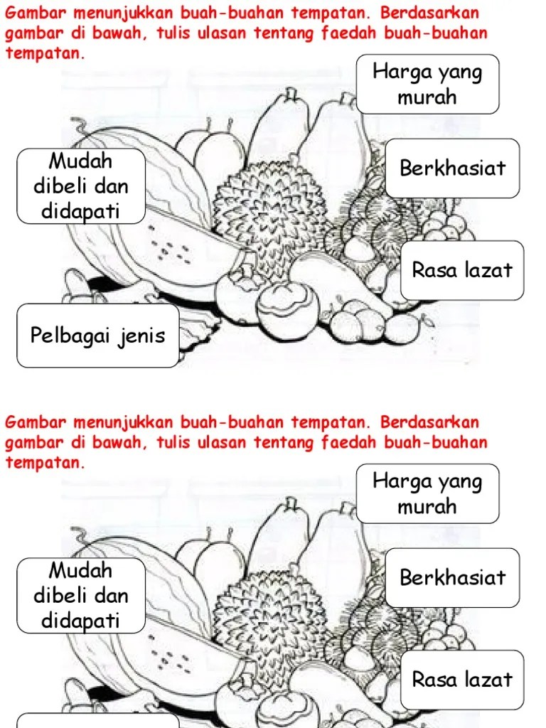 Check out our other videosringkasan . Mudah didapati nyatakan contoh buah nyatakan di mana boleh didapati isi ketiga pendahuluan penutup panduan menjawab soalan 1. Don't forget to like and subscribe to kiz channel. Fun crayons eduspace ulasan pt3 . Fun crayons eduspace ulasan pt3 faedah buah buahan tempatan. Hope you enjoyed the video. Karangan kebaikan makan buah buahan tempatan . Contoh karangan kelebihan dan kebaikan buah buahan tempatan versi 2019 soalan lisan karangan rangsangan spm. Contohnya, semasa musim durian, banyak pelancong dari luar negara .